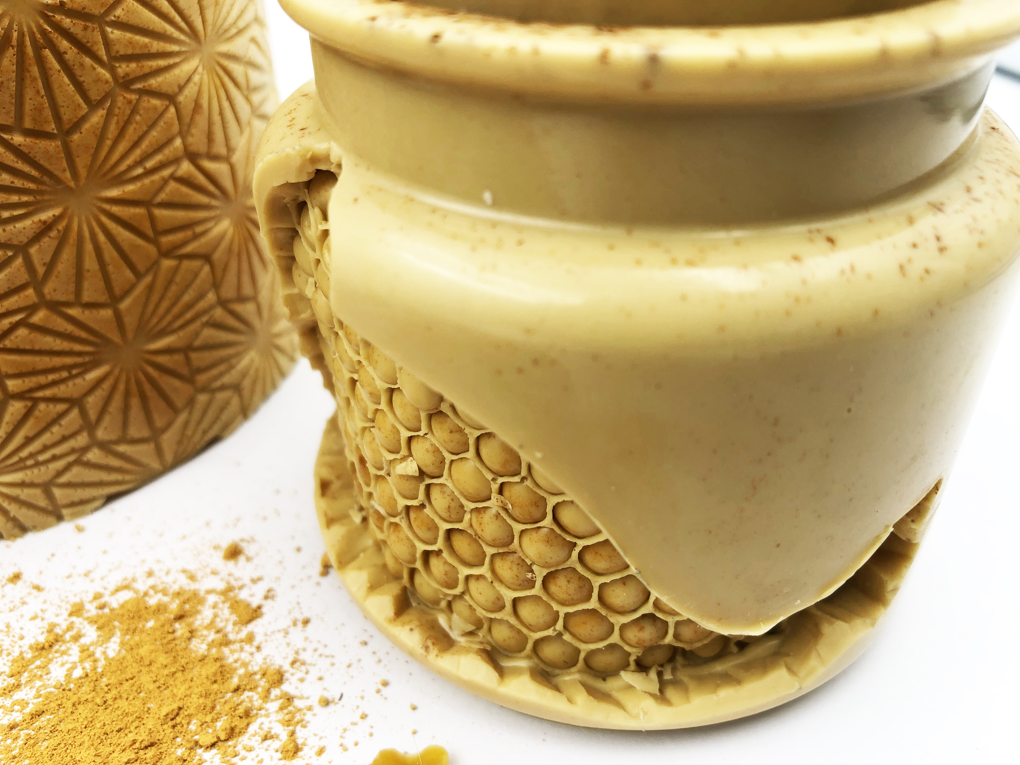 Ou bien vous pouvez choisir la formule « pure » qui garde le plus la flexibilité de la cire et la maniabilité. Sa surface peut marquer très facilement les coups, griffures ou frottement. Elle est plus sensible aux variations de température et aux hautes températures et peut blanchir sous les UV du soleil. Cette formule est facilement transformable et modelable.