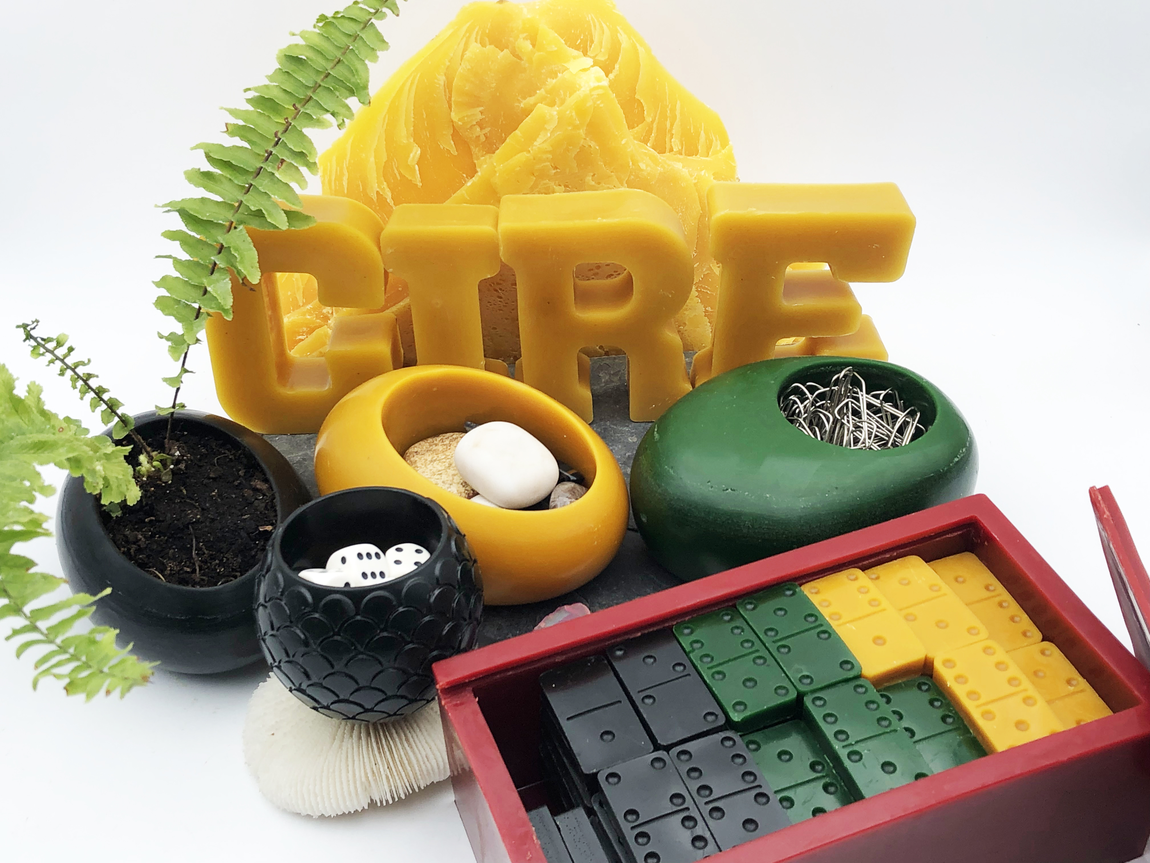 Dans un désir de renouveau, la créatrice voulait donner une utilité d’objet à la cire d’abeille en plus de son utilisation déjà existante dans les cosmétiques, produits d’entretien et autres usages.